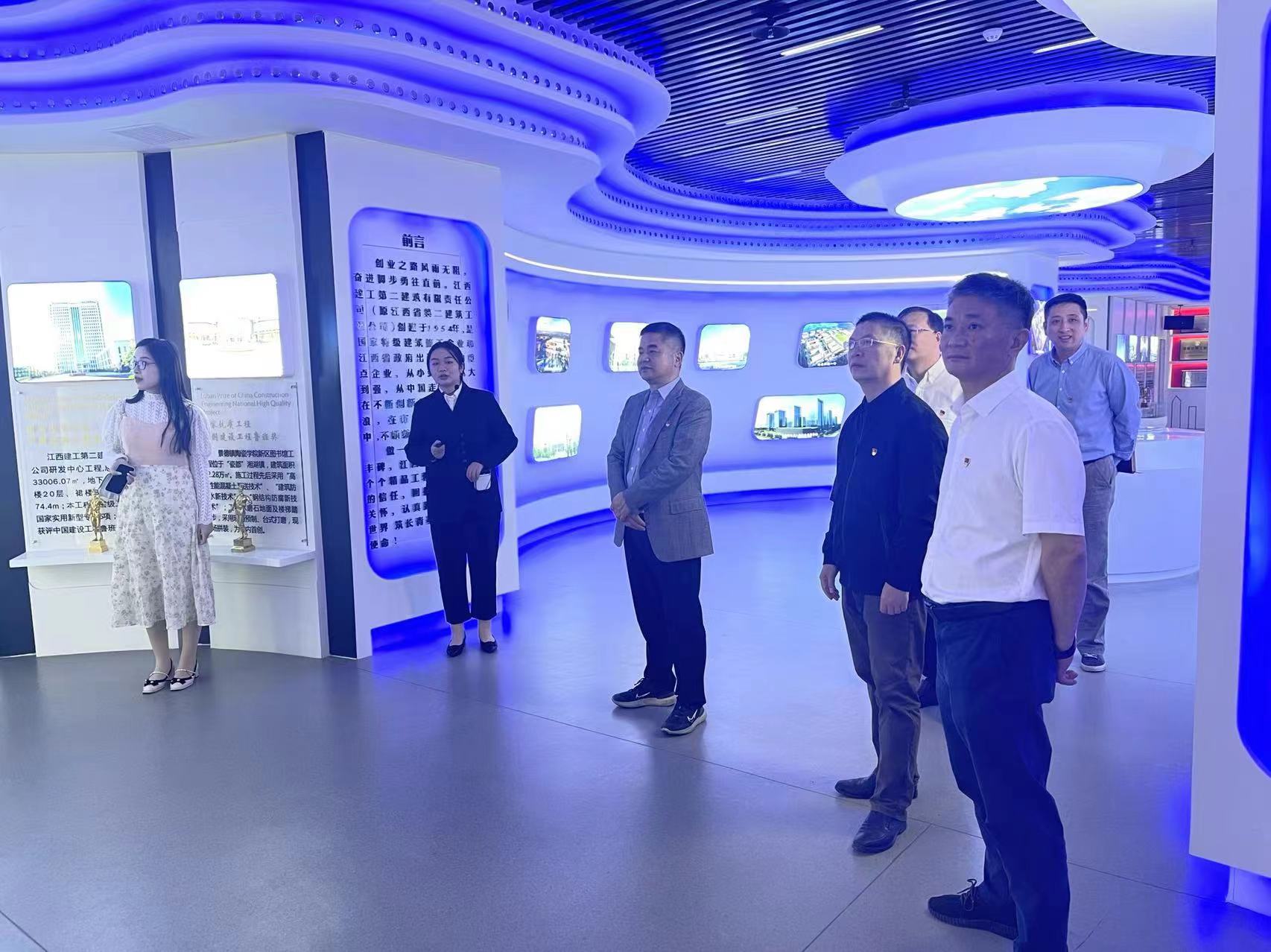 座谈会后,魏丹一行还参观了今年会官网首页二建荣誉室,听取了公司发展史、经营规划、获得荣誉等内容的介绍。